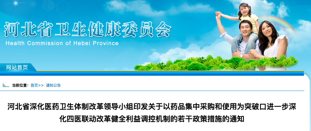 医药网5月26日讯 近日,河北省卫健委发布《河北省深化医药卫生体制改革领导小组印发关于以药品集中采购和使用为突破口进一步深化四医联动改革健全利益调控机制的若干政策措施的通知》(以下简称《通知》)。